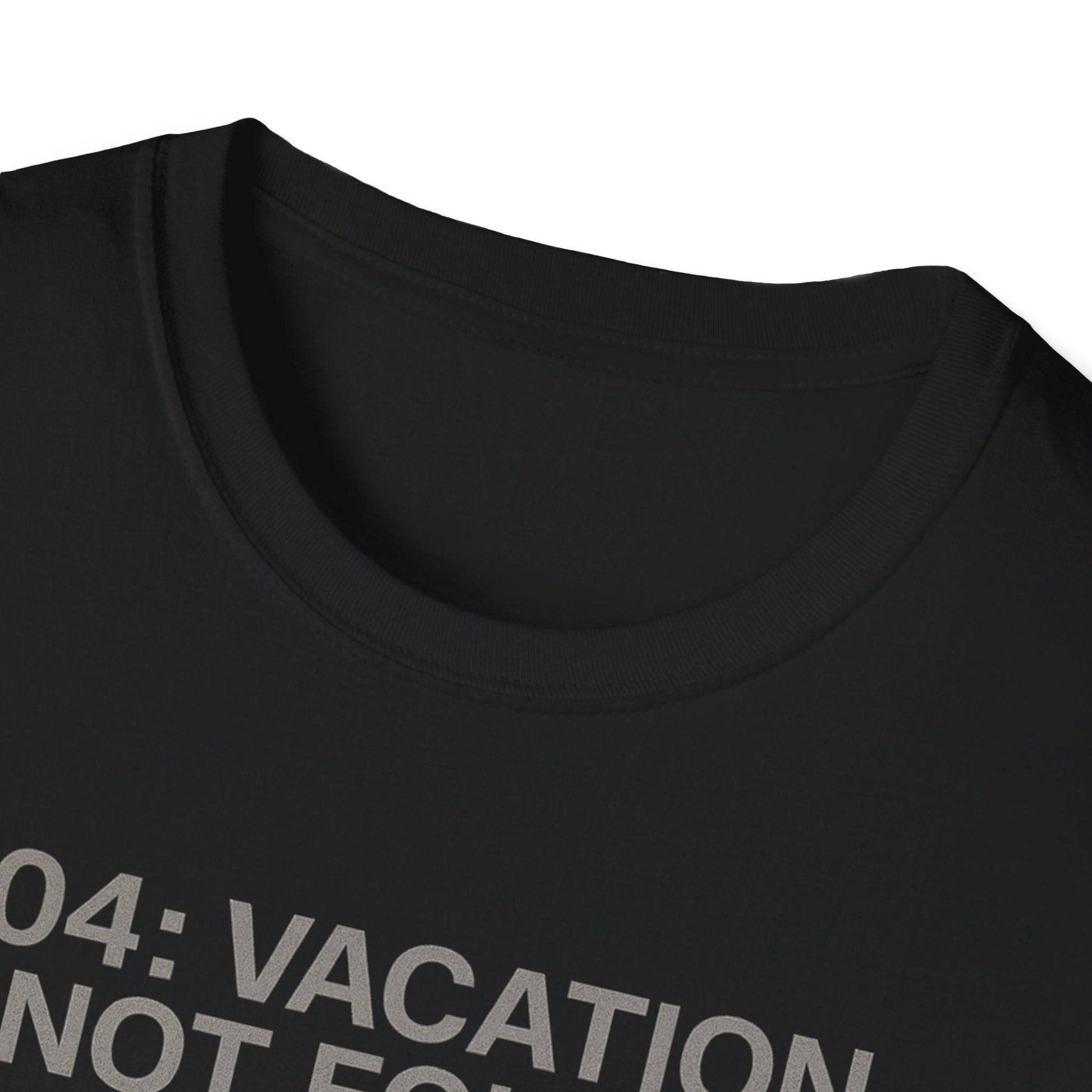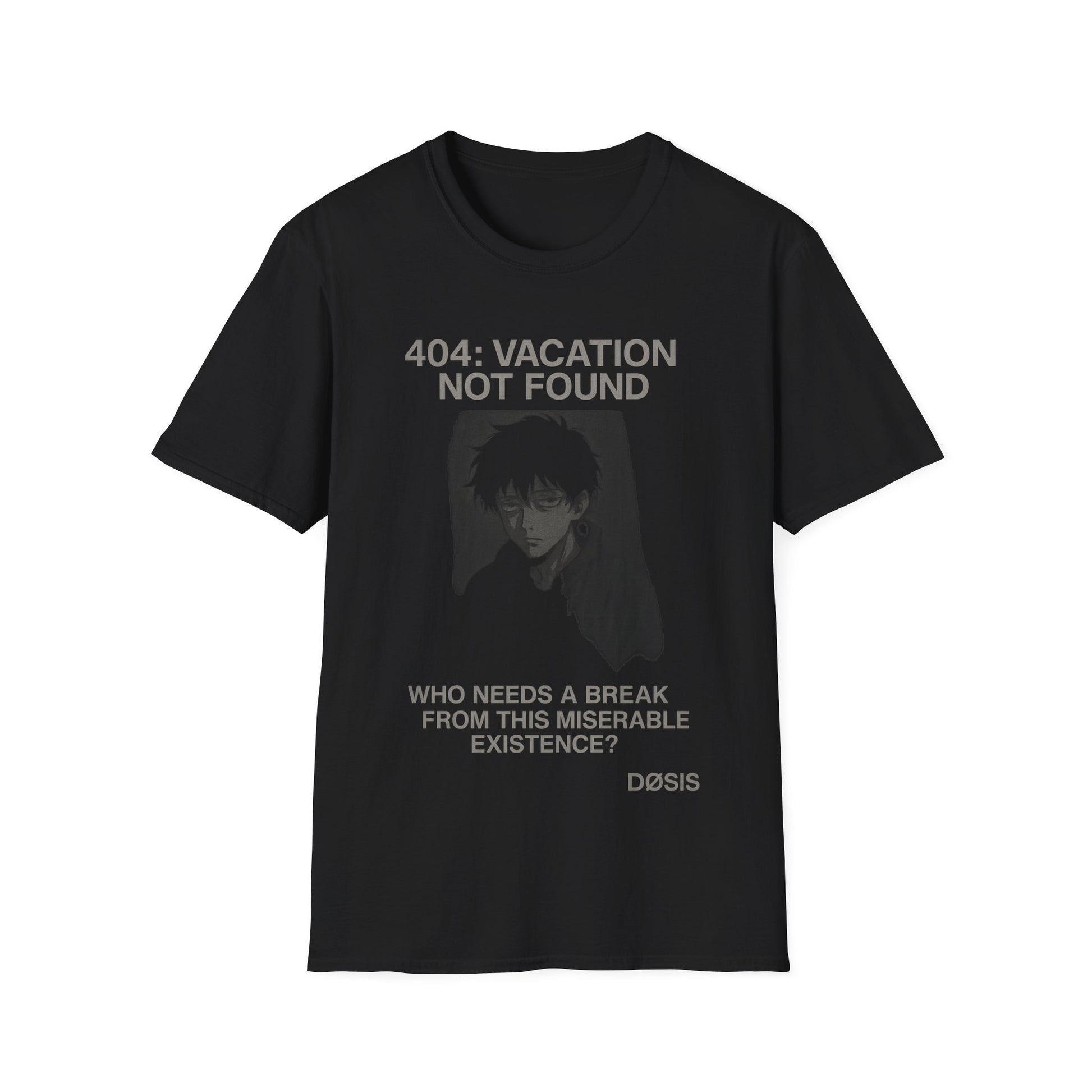 404: VACATION NOT FOUND — Camiseta negra existencial unisex | DROP_04 DØSIS | Estilo anime oscuro y minimal